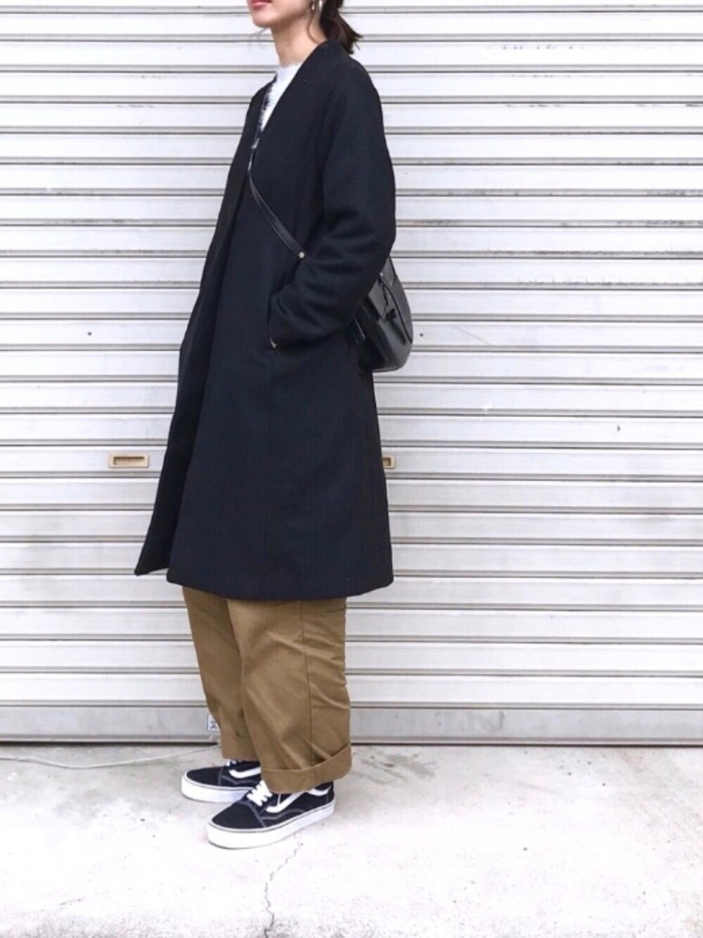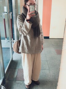たろ☺︎のその他アウター「チェックストール付きノーカラーコート」を使ったコーディネート