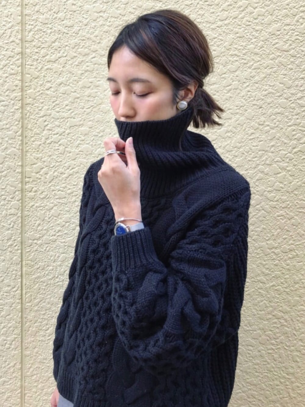 たろ☺︎のニット/セーター「ケーブルオフタートルニット タートルネック ケーブルニット トップス」を使ったコーディネート