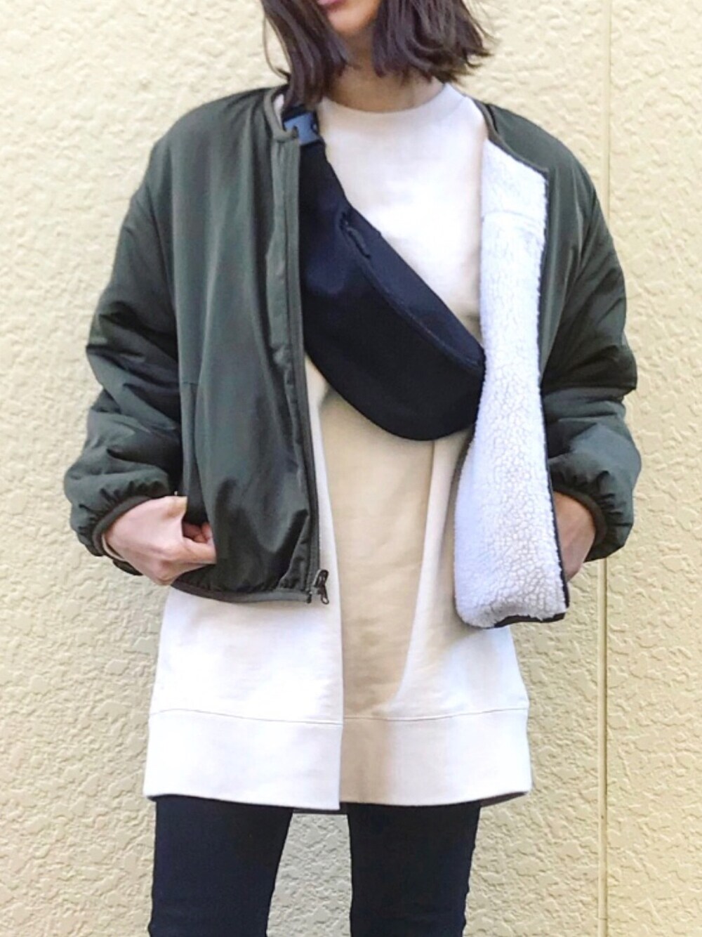 たろ☺︎のブルゾン「リバーシブルボアブルゾン ボアジャケット 2way ブルゾン アウター バイカラー」を使ったコーディネート