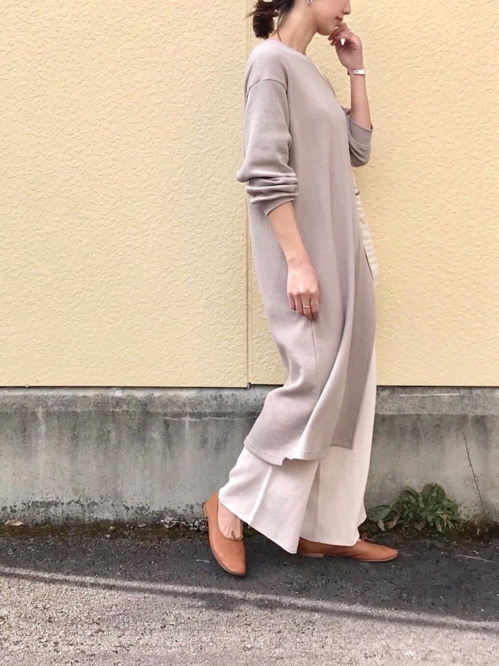 たろ☺︎のワンピース「バックベルトワッフルスリットワンピース」を使ったコーディネート