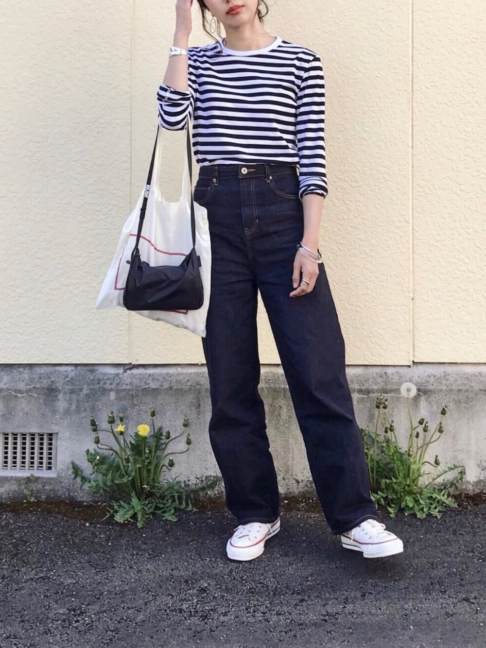 あれ、またボーダーとデニム.........🙄 今日はZOZOのシンプルなボーダー。 胸囲プラス6cm 肩幅プラス4cm ちょうど良い感じになった☺️ Instagram→@instaro__