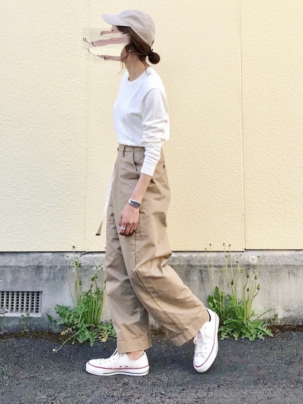 たろ☺︎のニット/セーター「ホールガーメントコットンクルーネックニットプルオーバー(パターンオーダー)/ホワイト[WOMEN]」を使ったコーディネート