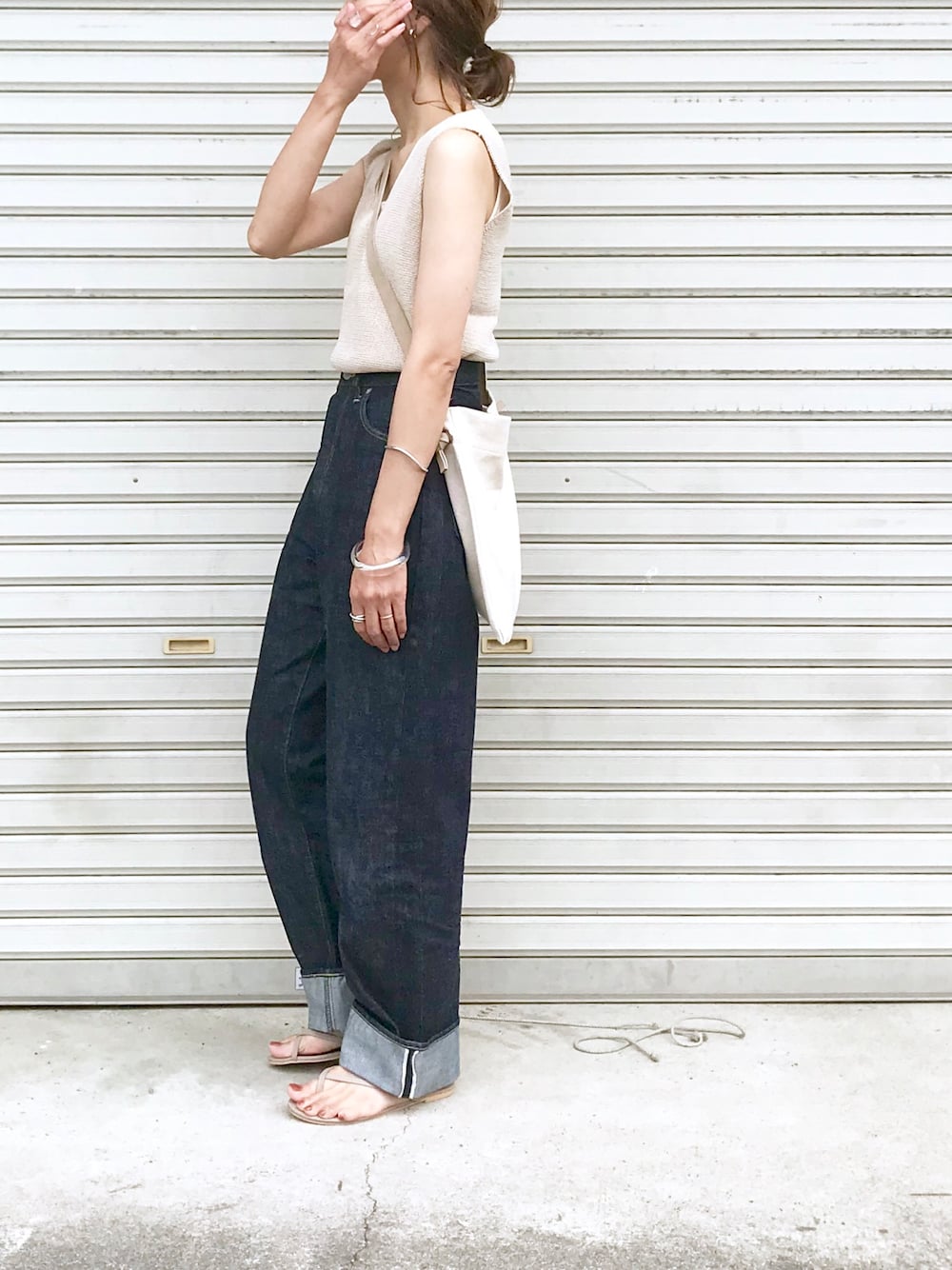 たろ☺︎のタンクトップ「ニットスクエアネックスリーブレス」を使ったコーディネート
