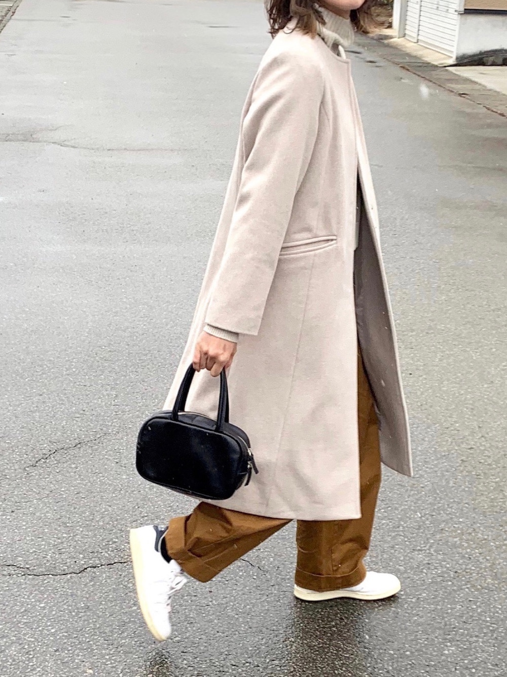 KBFのコート、とっても形がキレイ。 明るい色味も、コーデが暗くなりがちなこの時期に良い◎ Instagram→@instaro__