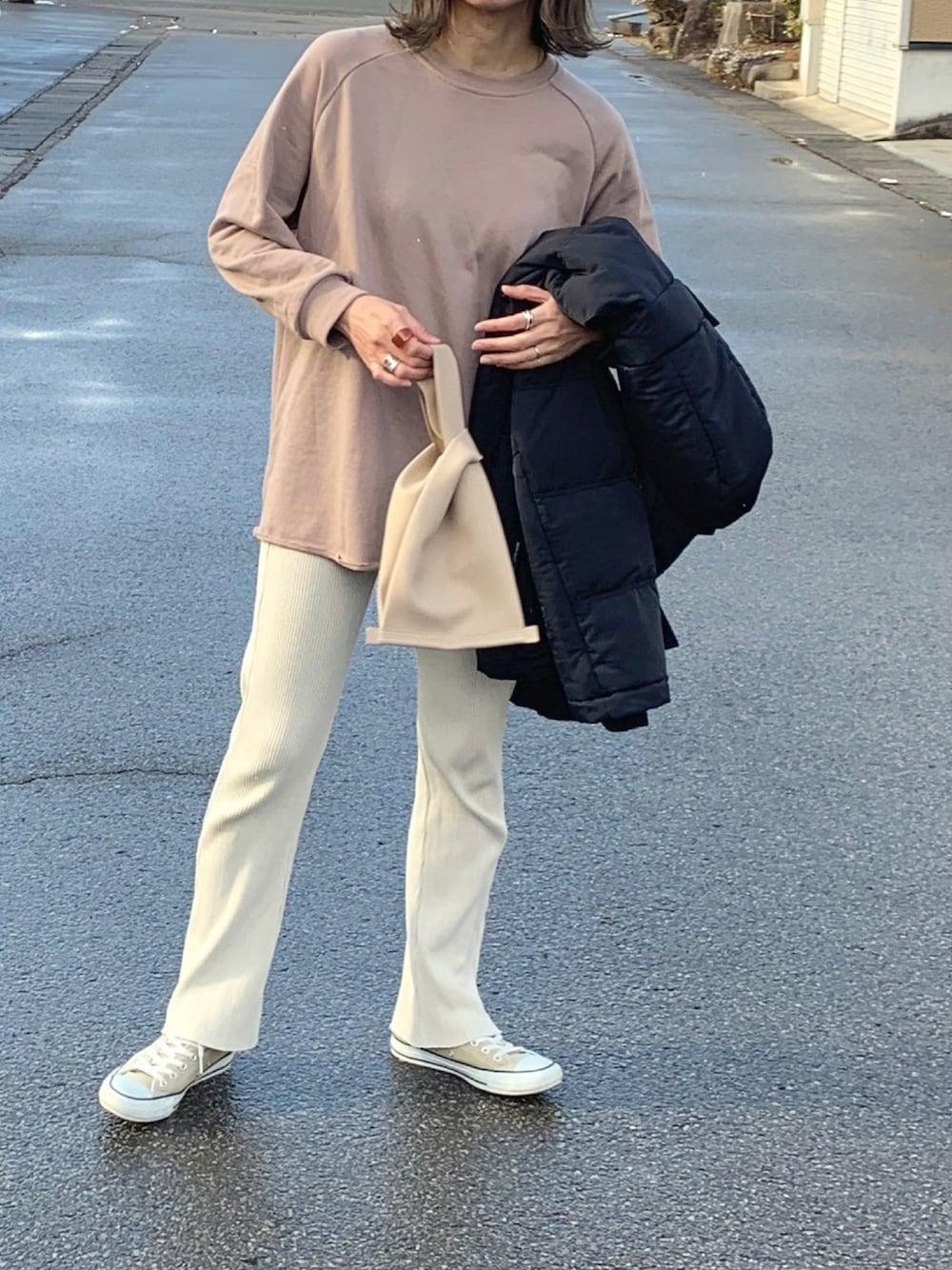 Shelly islandのトップスがプチプラで形良しで色違いも欲しい😍 これだけでは寒いので、しっかりあったかいダウンで◎ Instagram→@instaro__