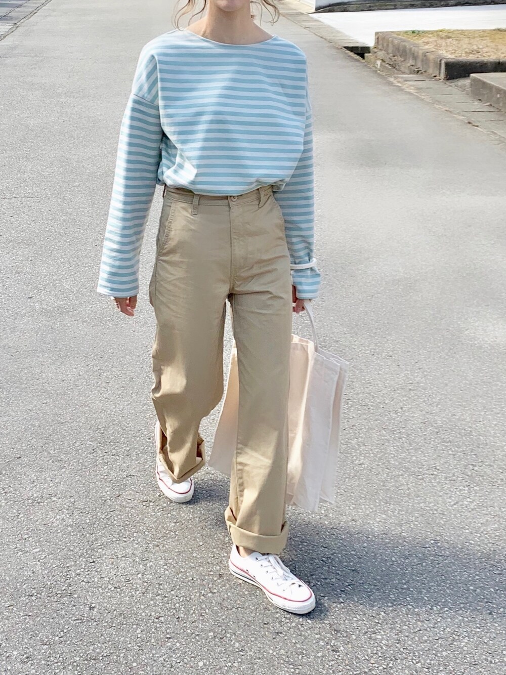 たろ☺︎のチノパンツ「DAD CHINO UNBASIC KHAKI FINE TWILL」を使ったコーディネート