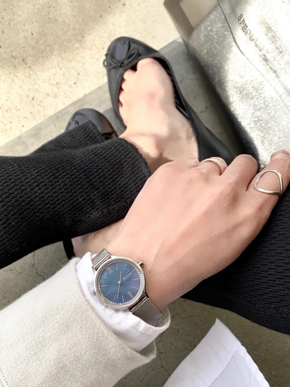 SKAGENのブルーが印象的な時計が主役。 Instagram→@instaro__