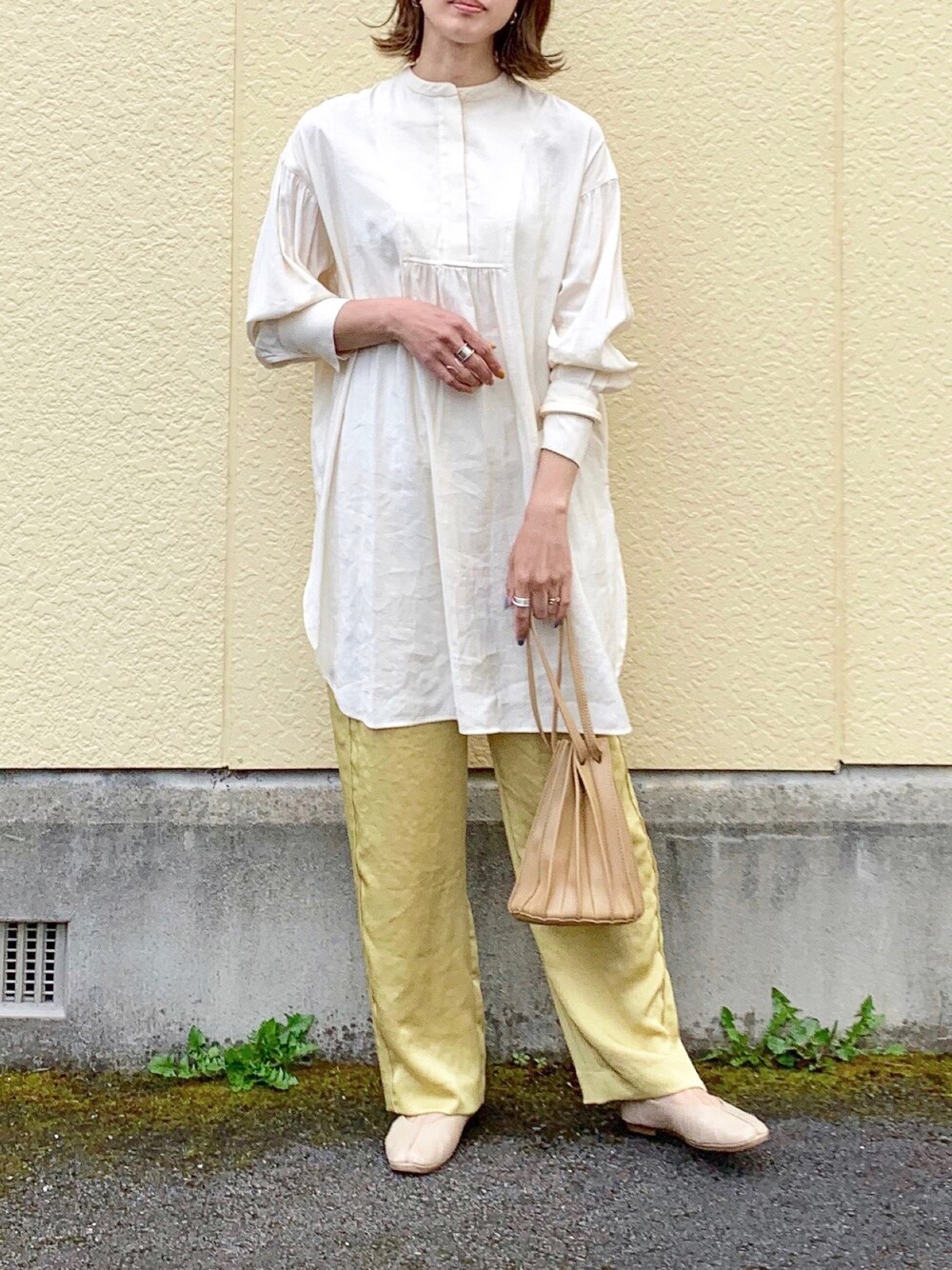たろ☺︎のハンドバッグ「カヌレ巾着型プリーツハンドバッグ」を使ったコーディネート