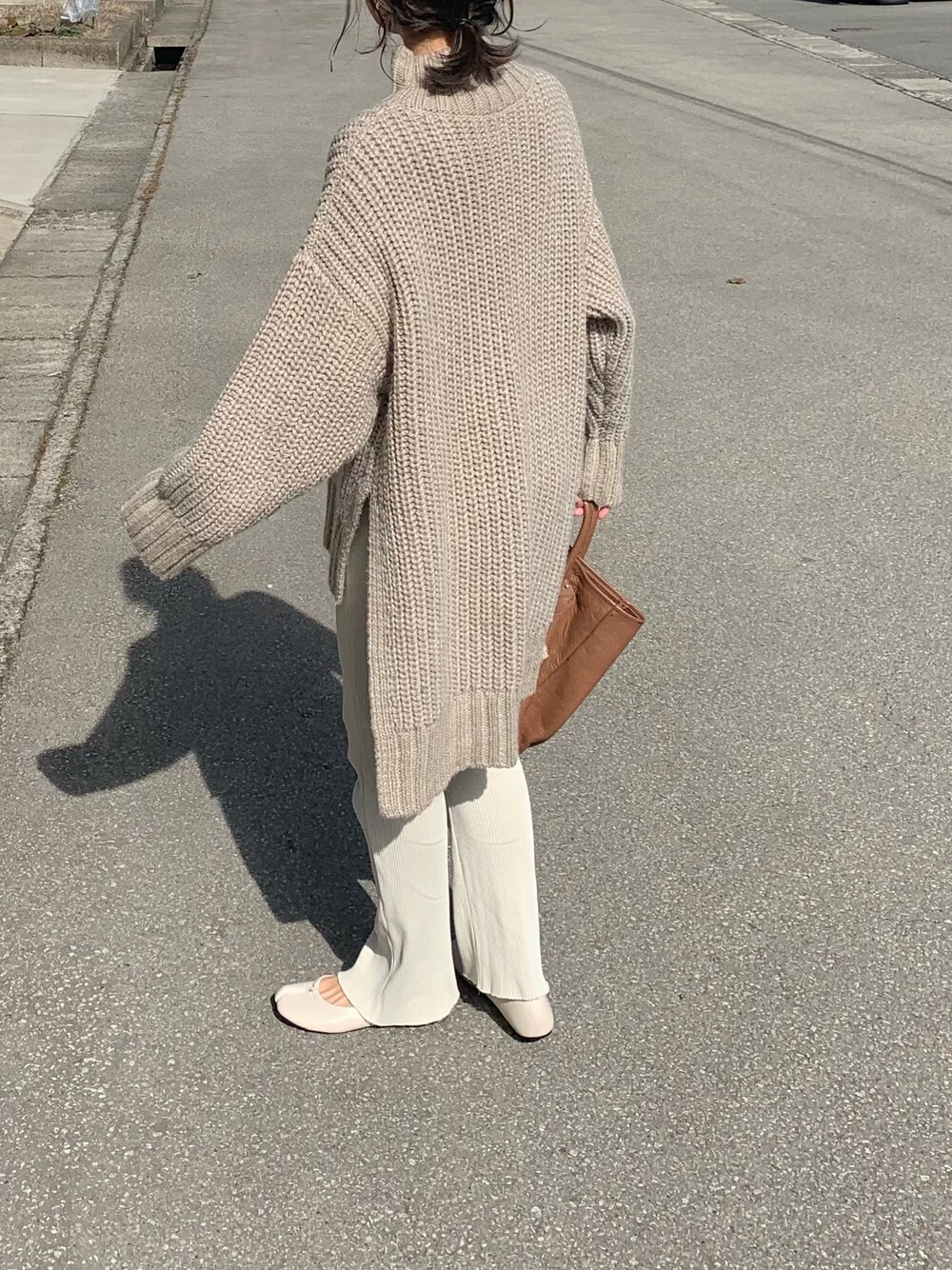 前後で長さが違うざっくりニット。 シルエットとやさしいベージュがお気に入り♡ Instagram→@instaro__