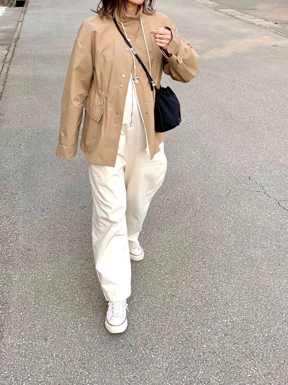 フードのないマウンテンパーカーがカジュアル過ぎず大人っぽく着られて好き♡ Instagram検索@instaro__