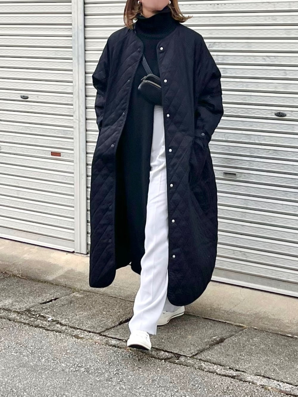 たろ☺︎のノーカラーコート「キルティングボリュームコート」を使ったコーディネート