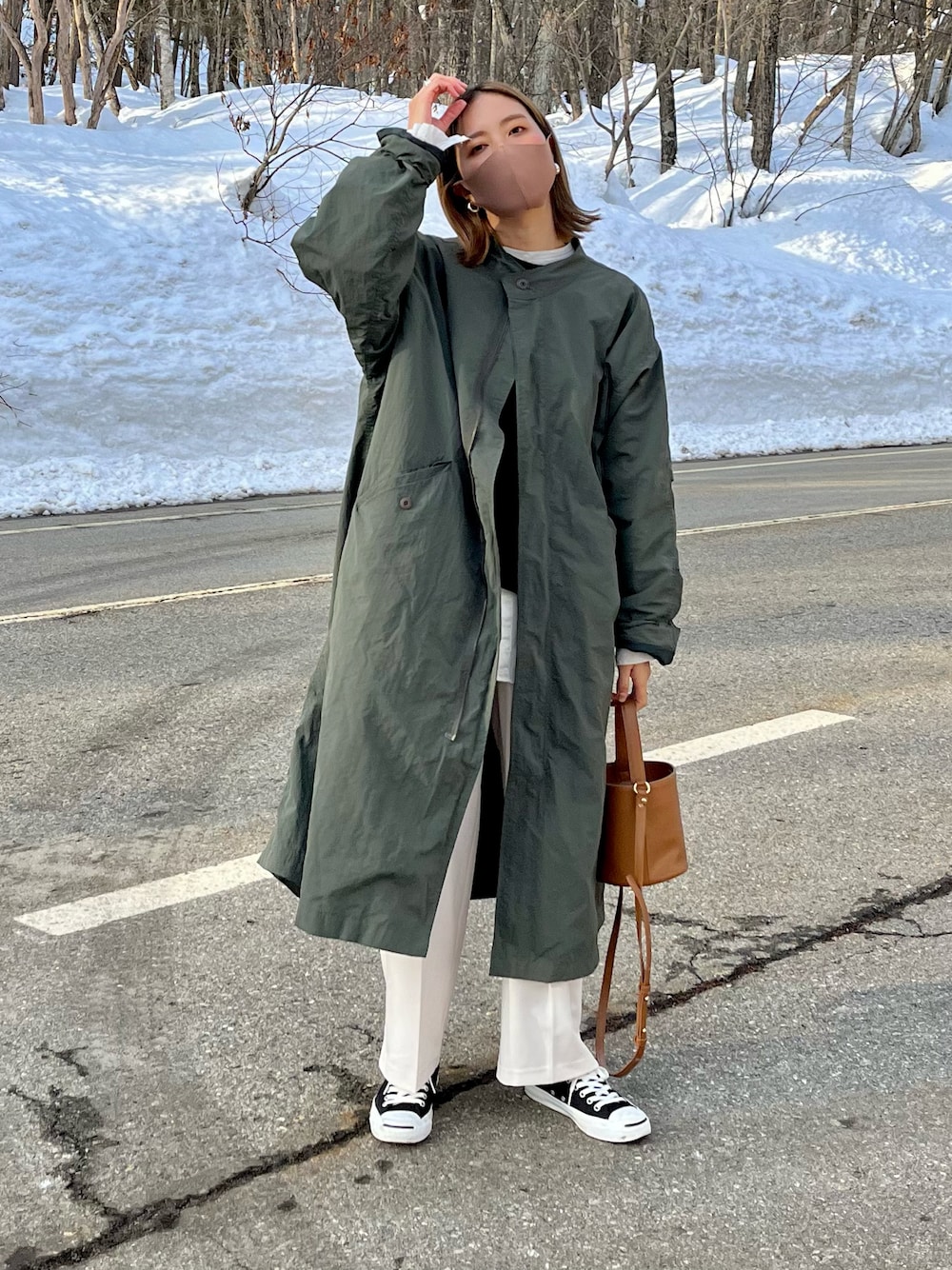 着回し♻️ カーキのミリタリーコートがお気に入りすぎて◎ まだ寒いから、シャツに裏起毛スウェットであったか☺️ Instagram→@instaro__