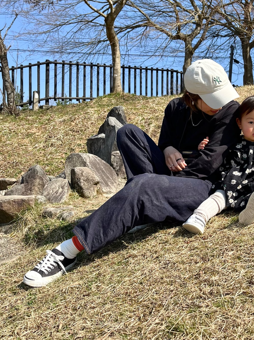 子供3人と公園へ。 デニムに足跡... だっこの度に付くよね... この黒ロンTめっちゃ良い。 シルク混の生地感も首の詰まり具合も、身幅も丈も厚みも全部好み♡ シンプルで流行り廃りなく、真夏以外通年使えるものやし、これは買いだめとこうかな◎ しかし白も欲しかったーーーーーー Instagram→@instaro__