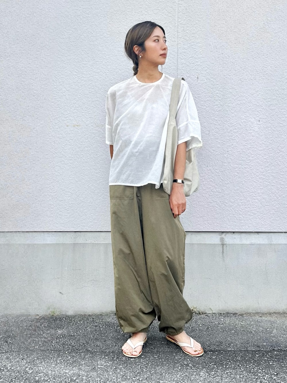 カーキのパラシュートパンツ。 着回し着回し♻️ Instagram→@instaro__