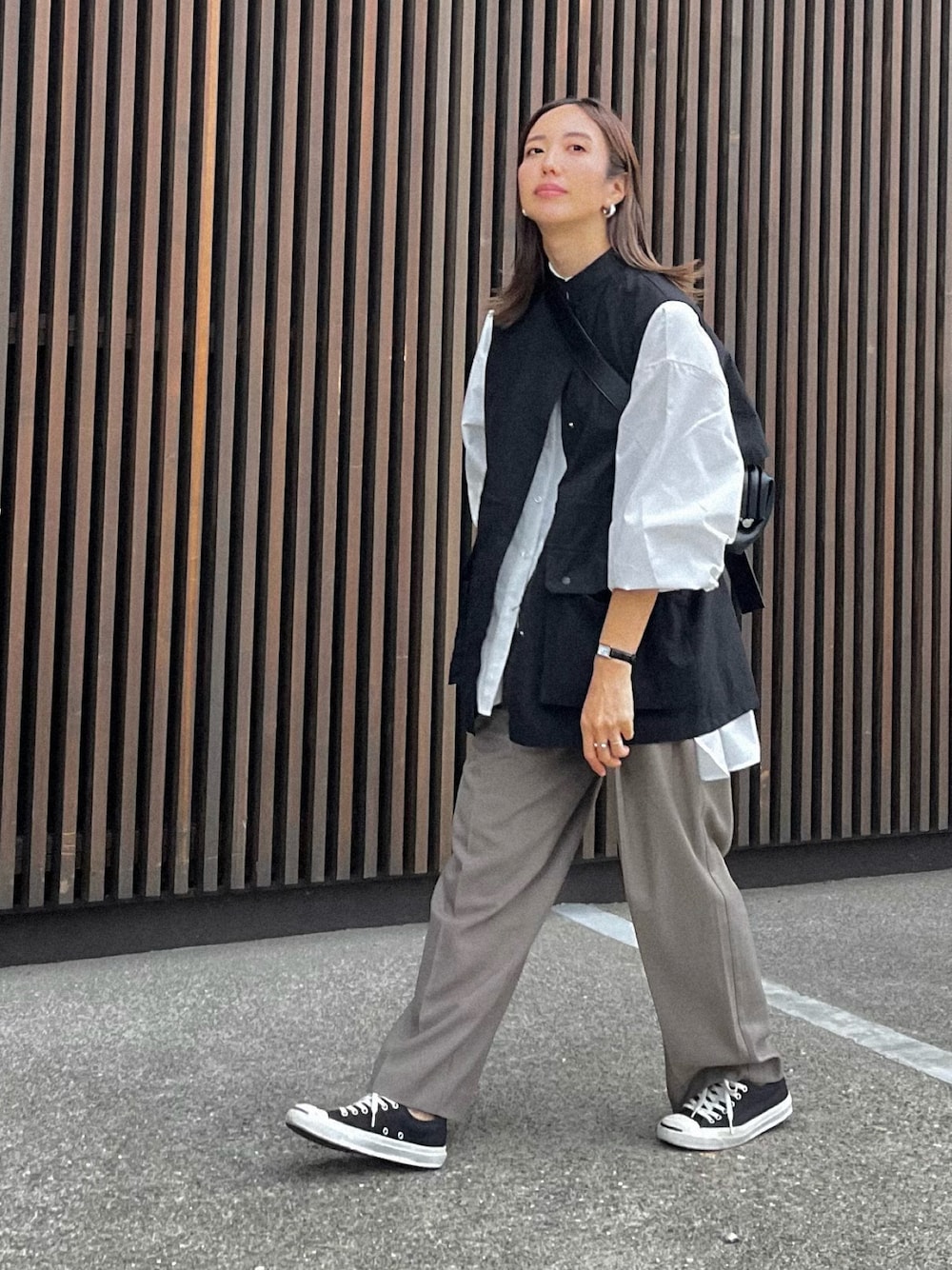 ベストにふんわりボリューム袖のシャツを合わせたかった日。 やっと涼しくなって着たけど、日中はまだ脱いだり着たり忙しかったー Instagram→@instaro__