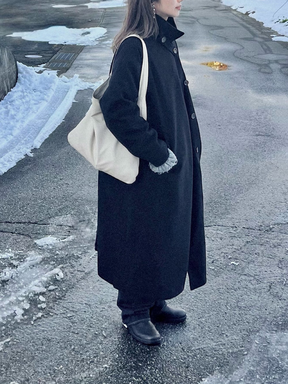 雪の日コーデ。 お気に入りイヤリング♡ Instagram→@instaro__