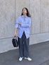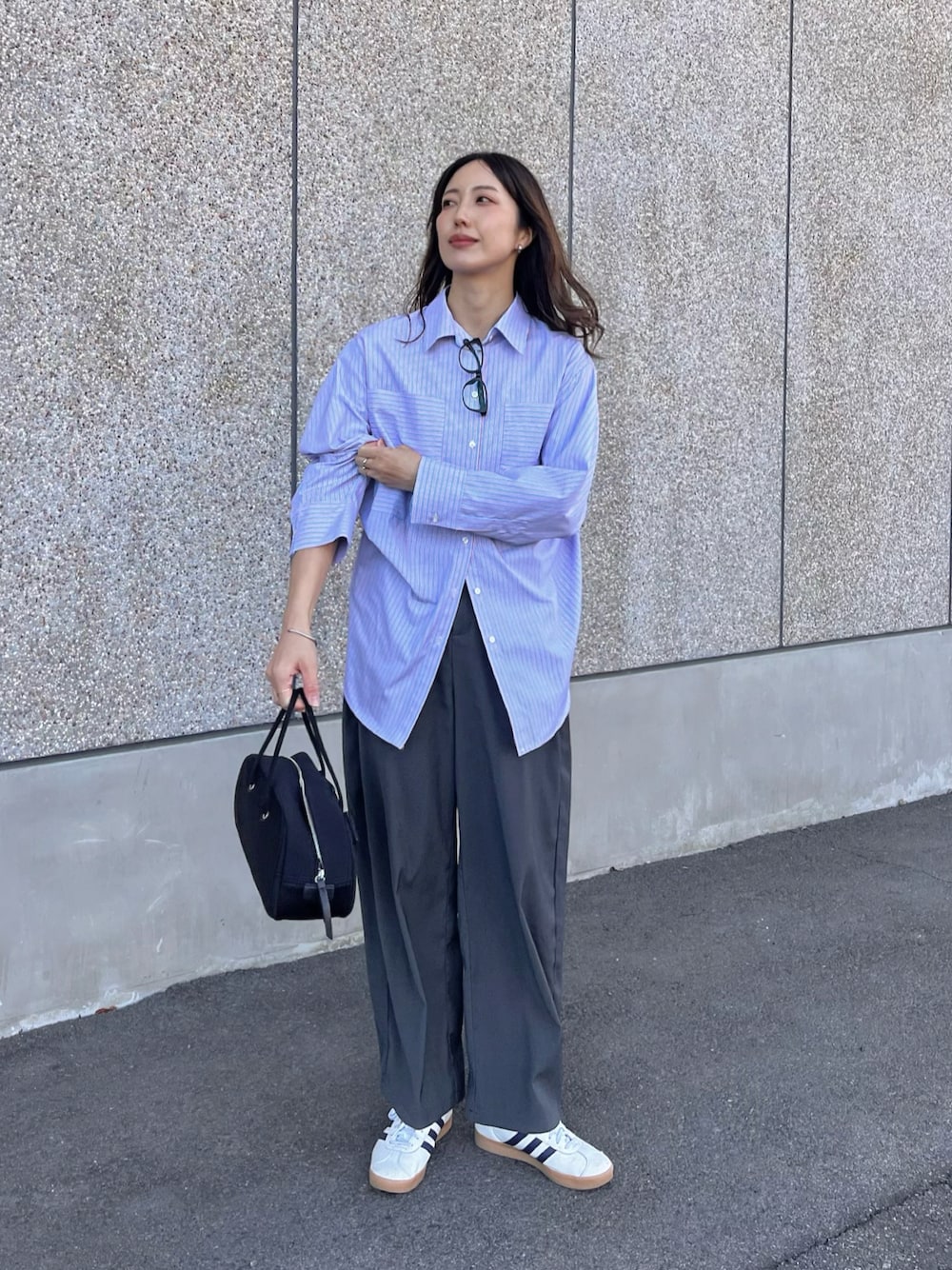 実は赤ラインが入ってるブルーストライプシャツが可愛くてたまらん...♡ 春が一気に来た♡ 着るだけでまぁるい立体感が出て、シルエット最高だよ◎ shirt:@gallest_jp 【Timeless|ビッグポケットフォルムシャツ】 #gallest#ギャレスト#pr#gallest26ss