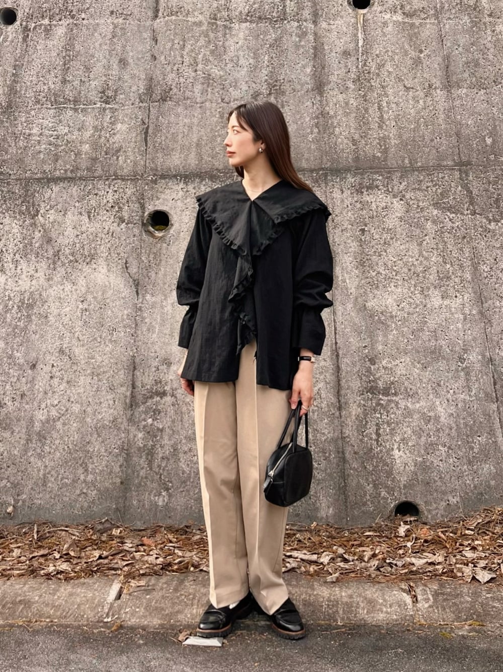 たろ☺︎のシャツ/ブラウス「ミックス ガーゼ ビッグカラー フリル ブラウス / Mix Gauze Big Collar Frill Blouse」を使ったコーディネート