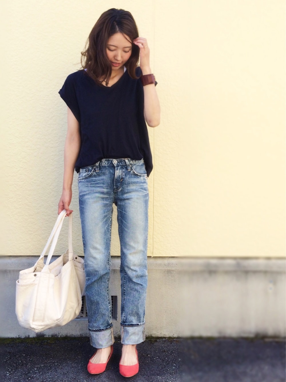 たろ☺︎のパンプス「スエードポインテッドバレエ」を使ったコーディネート