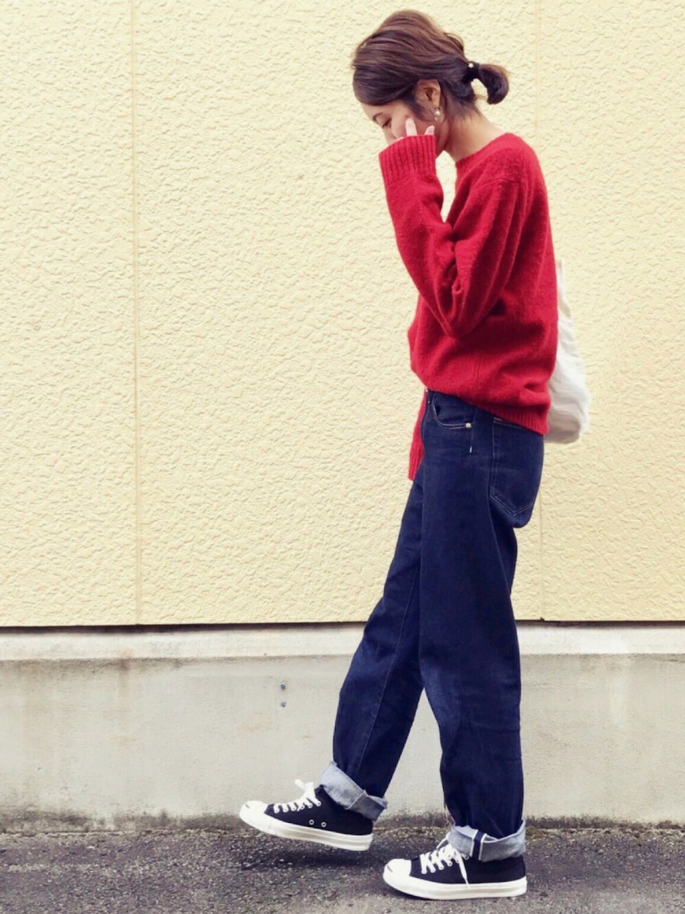 前回の赤ニット着回しー インスタ⇨@instaro__