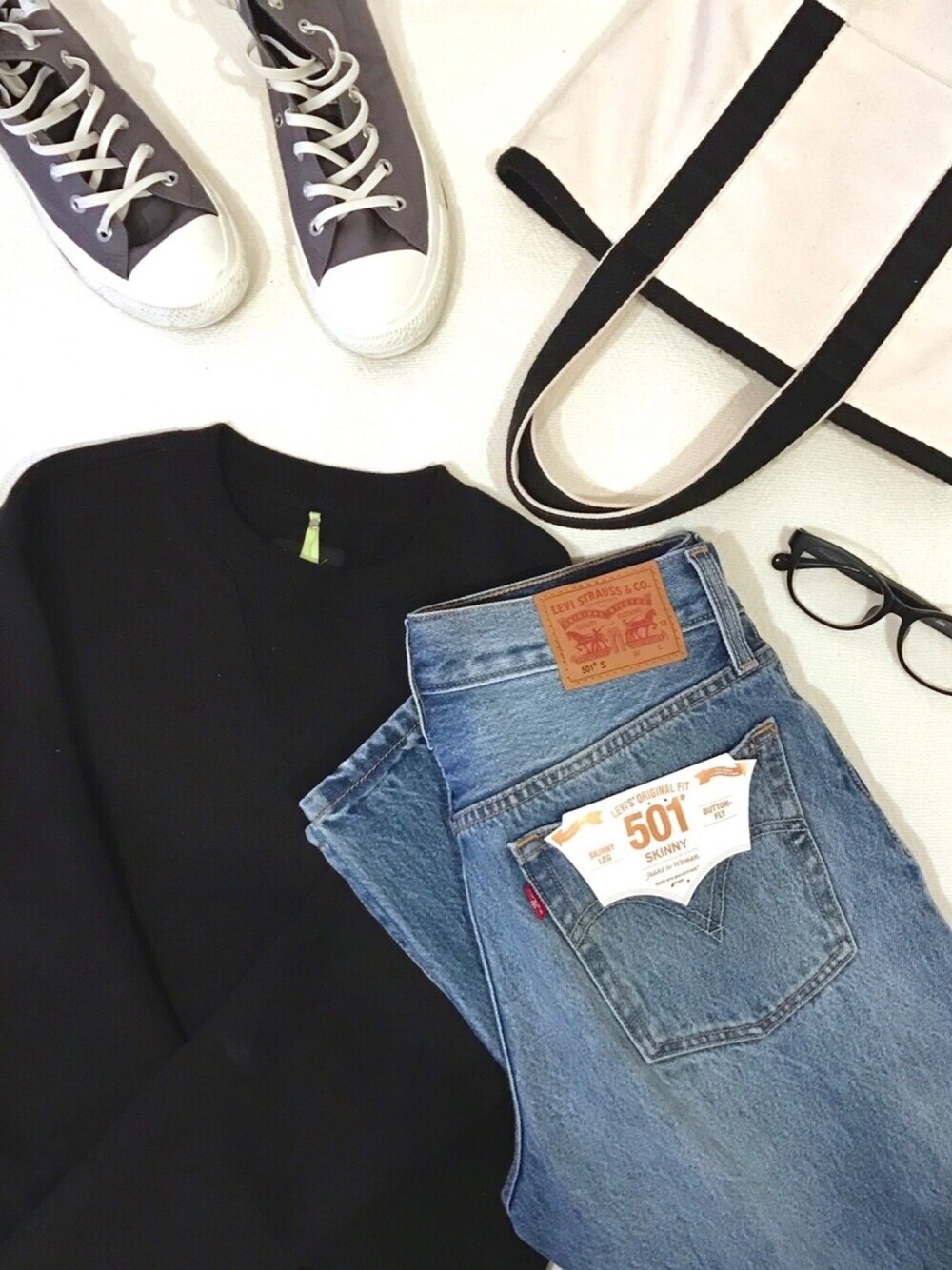 Levi's®️から新発売される「501®️Skinny」のキャンペーンに参加しています☺️ ダメージデニムが私には新鮮で、いろいろ合わせたくなる❤️ 春夏は特に活躍してくれそうだな♫ めずらしく置き画^ ^ インスタ⇨@instaro__