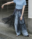 チノタックワイドパンツにチュールセットになっているベルトのみ重ねてますദ്ദി ˃ ᵕ ˂ ) Tシャツでカジュアルに着て夏らしく🩵🌞