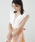 【プリーツラッフルトップ】 普段サイズ:S / 着用サイズ:FR プリーツとフリルが華やかなカットソー。 レースアップデザインは調節もしていただけますが、開きはあるのでインナー着用がオススメです。 また、カットソー生地なので夏でも着心地よく着ていただけます。 【オーガニックコットンレーススカート】 普段サイズ:0 / 着用サイズ:0 マーメイドシルエットが綺麗なレーススカート。 ハイウエストデザインで腰まわりがいつもよりも少しタイト目ですが、普段のおサイズで着ていただけます。 丈も最近の中では長すぎない丈感で155cm、0サイズ着用で足首より上の長さになります。