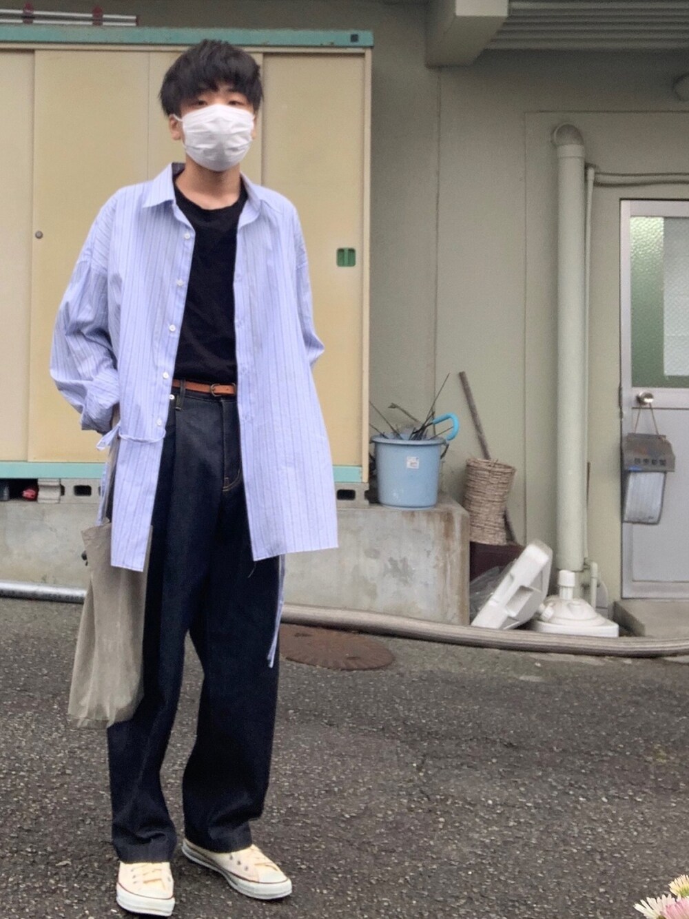 春にはストライプ柄が欲しくなる気がする。 見えてないけど深く入ったスリットがたまらなくいい😊 デニムは濃い色の方がすきです! 暖かくなってきてシャツだけでいけるから半袖の出番ももうすぐやってきそう😆