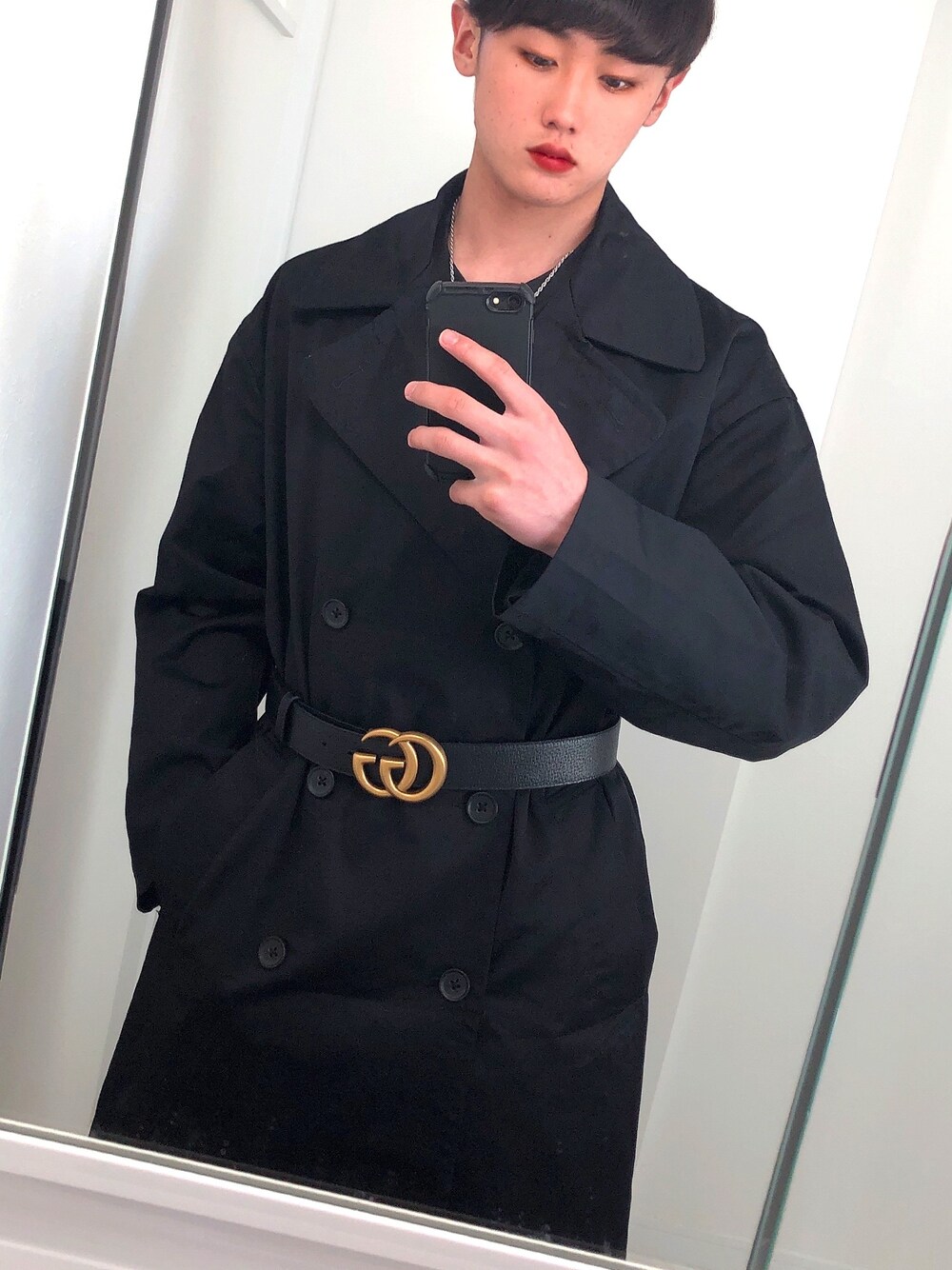 ブラック系のベルトを着用したメンズの春コーディネートの1枚目の写真
