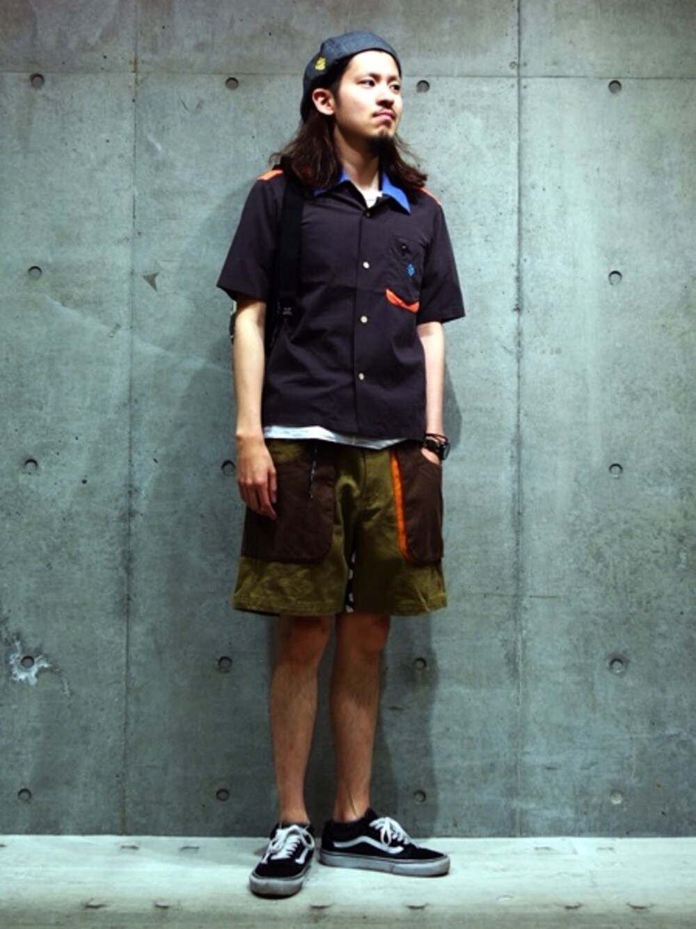 スタッフのコーディネート。 ショートパンツは色々なバリエーションがあります。 こちらは立体ポケットが特徴的な帆布素材のショーツです。