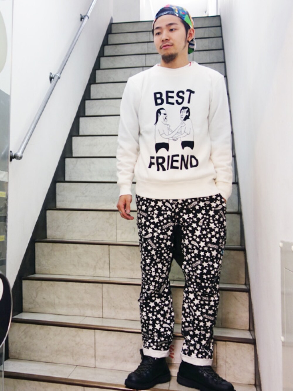 スタッフ・原田のコーディネート。 モノトーンでもさりげなくPOPに!