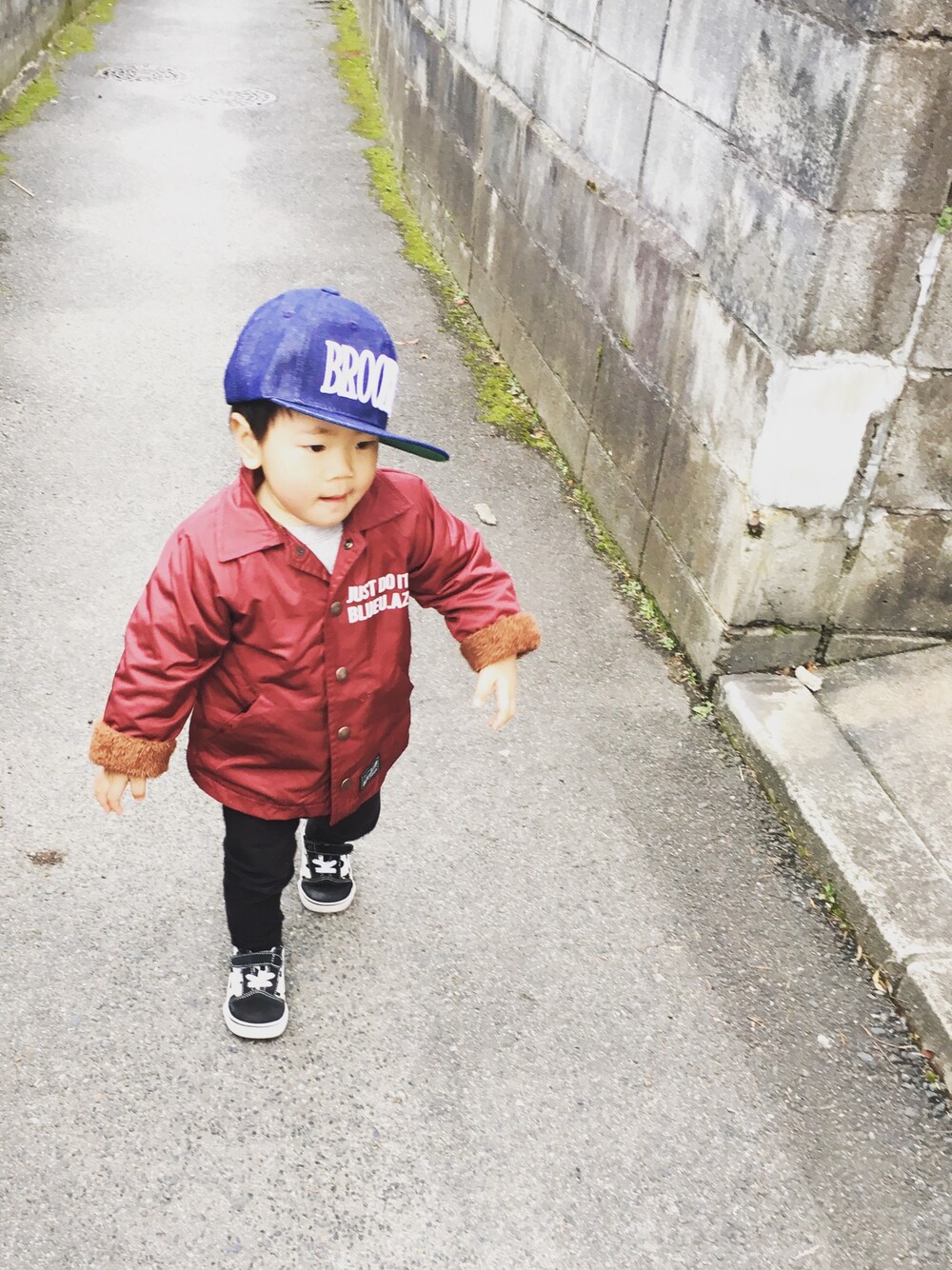 昨日のお散歩コーデ👣 エンジのコーチジャケットはsaleで最安値でget! 中はボアで暖かそう♡ ものすごく渋い(笑) COOLにキメたい時に着ようね😎 キャップは西松屋で♡ 安いのに可愛いーやないかーい! デニム生地で、他にグレーもあったよ☆★