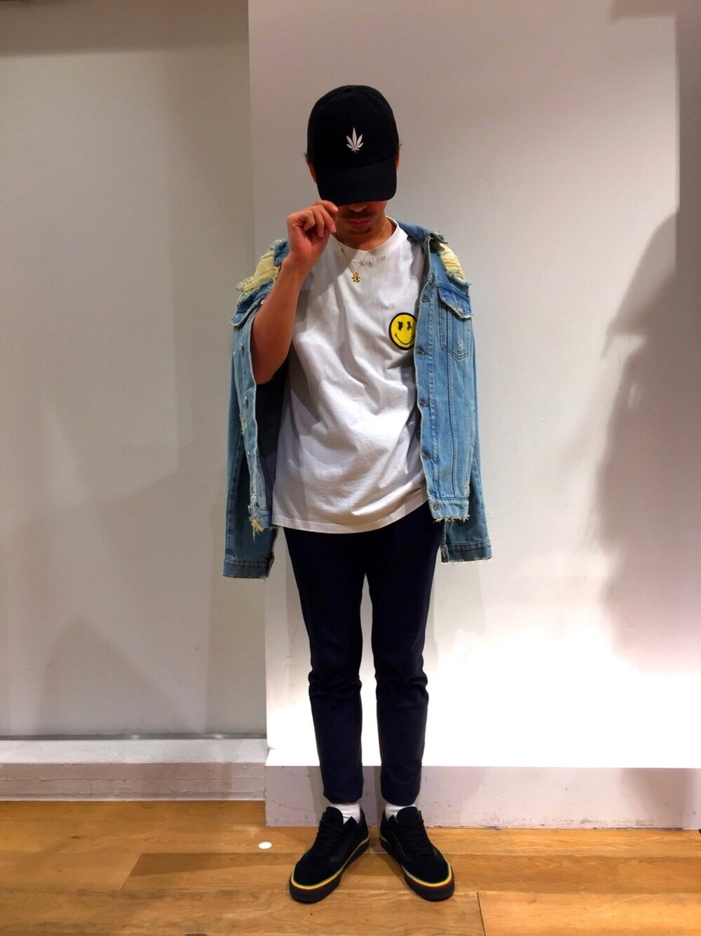 オーバーサイズのデニムジャケットで暖かい日の春スタイル。
