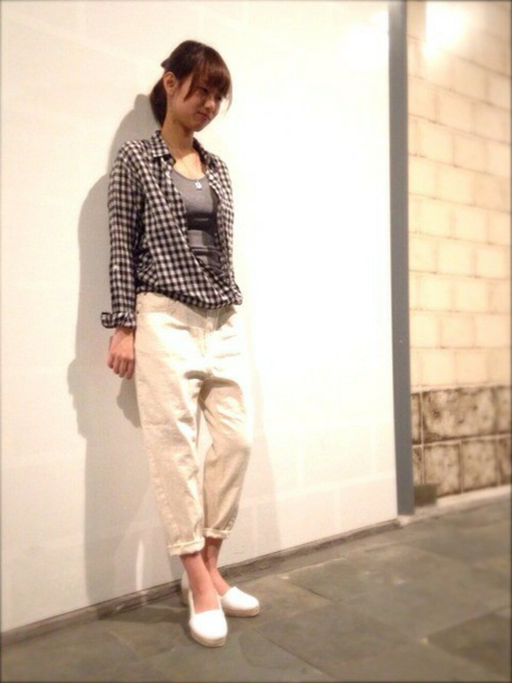 tashimana(Rinajour 福岡)のシャツ/ブラウス「Rinajour (リナジュール) ボイル柄シャツ (6018)」を使ったコーディネート