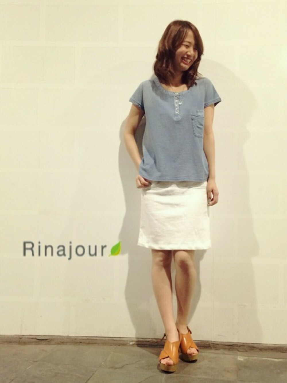インディゴTEEは パンツでも スカートでも 合わせやすい♡ どうせなら 足を出したい季節なので わたしはペンシルスカートで 夏先取りコーデヾ(@⌒ー⌒@)ノ