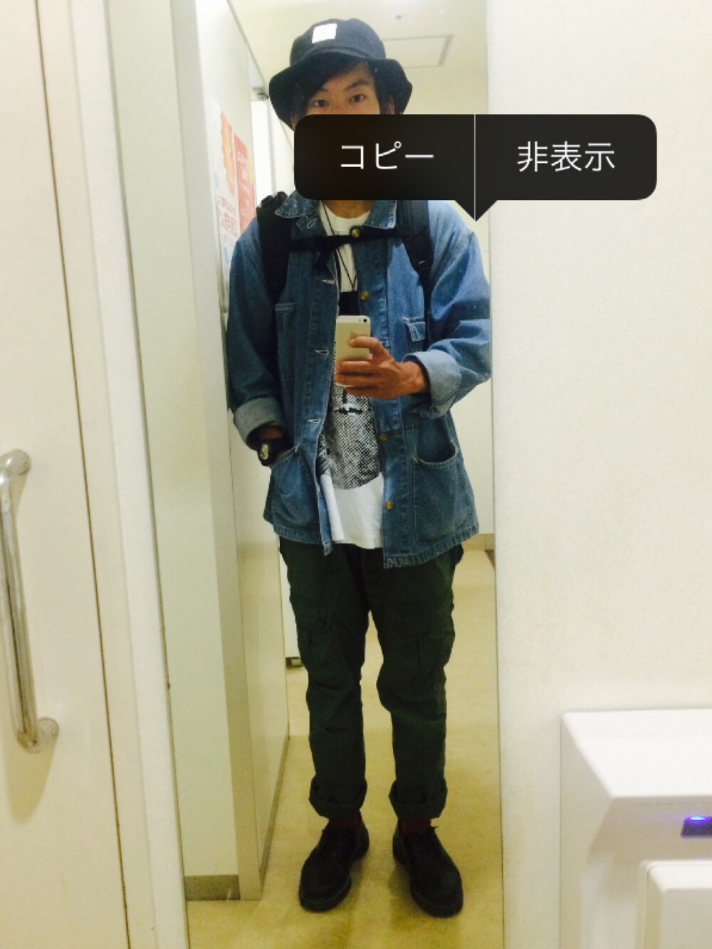 見えにくいですが、靴下赤です(笑) 最近ゆるいコーデにはまってます。 カバーオールは古着のカーハート。