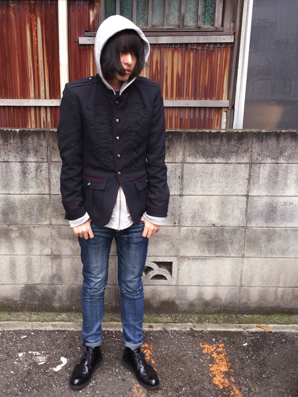 ずっと寝かせてた2013年のZARAのジャケット。 人気無さすぎたようで投げ売りされてたやつ。 (6,800円ぐらい?) これだけだとアクが強すぎて痛い王子っぽいのでパーカーでカジュアル寄りに。 パンツは無難にスキニーデニムで。 ブーツはガラスレザーのDannerポストマン。 これめちゃくちゃオススメ。 髪伸びすぎたので切りたい。