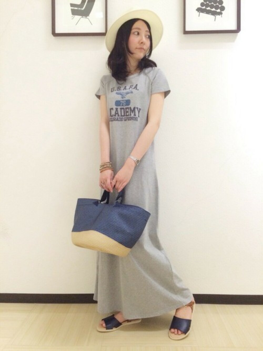 miki wのワンピース「avirex/アヴィレックス/S/S NUMBERING MAXI ONE PIECE/半袖 ナンバリング マキシワンピース」を使ったコーディネート