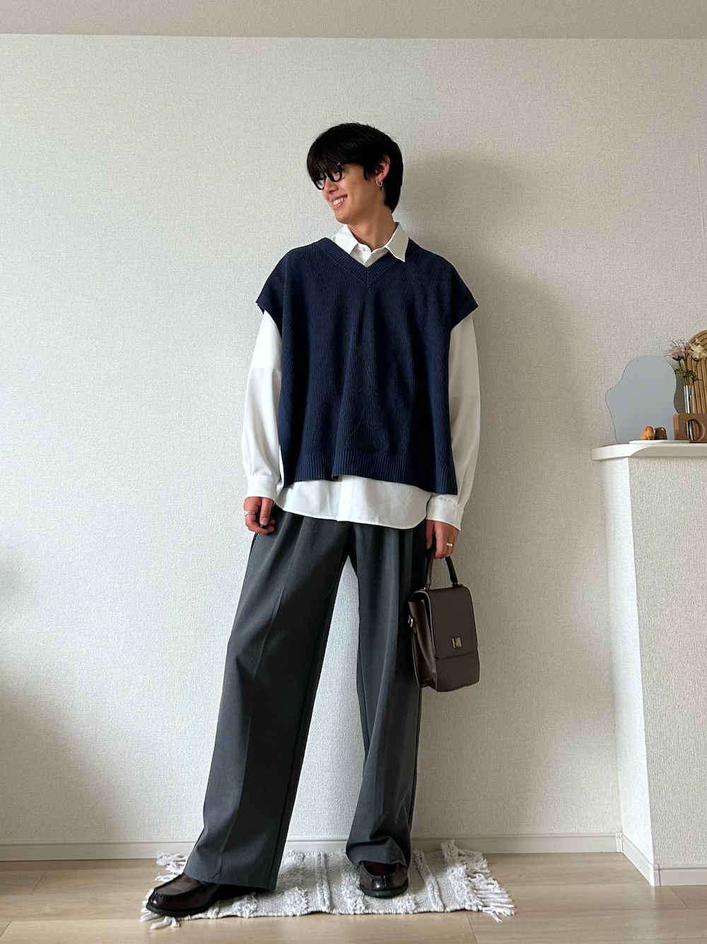 ゆるっと下に垂れるリボン付きのニットベストが最強に可愛いです! Instagram → @ts.82.fashion TikTok → @82_tatsuki