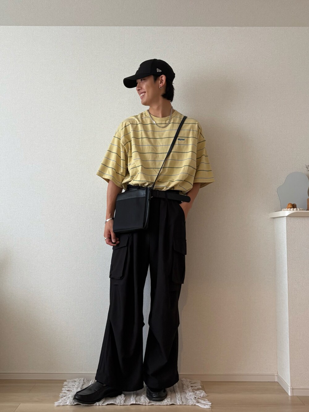 オールブラックの中に差し色として黄色を入れた夏コーデつくりました! TikTok → @82_tatsuki Instagram → @ts.82.fashion