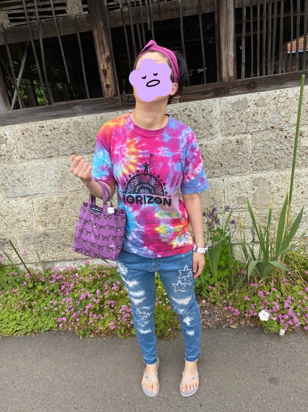 2020.5.31 今日のポイントは、自分で染めたタイダイ染めTシャツです👕 今は無理ですが、以前は栃木県那須町のアジアンオールドバザールで体験できました😊🎵 脚の短さが際立つけど、細く見えたからまぁよし🤣 あ、忘れるところでした💦 今日の新しいやつ ロキシーのビーサン👡 ZOZOのセールで買ったので小窓のサイズ表記とは違って24センチを履いてます😆この夏のお供にしようかと思ってます❤️