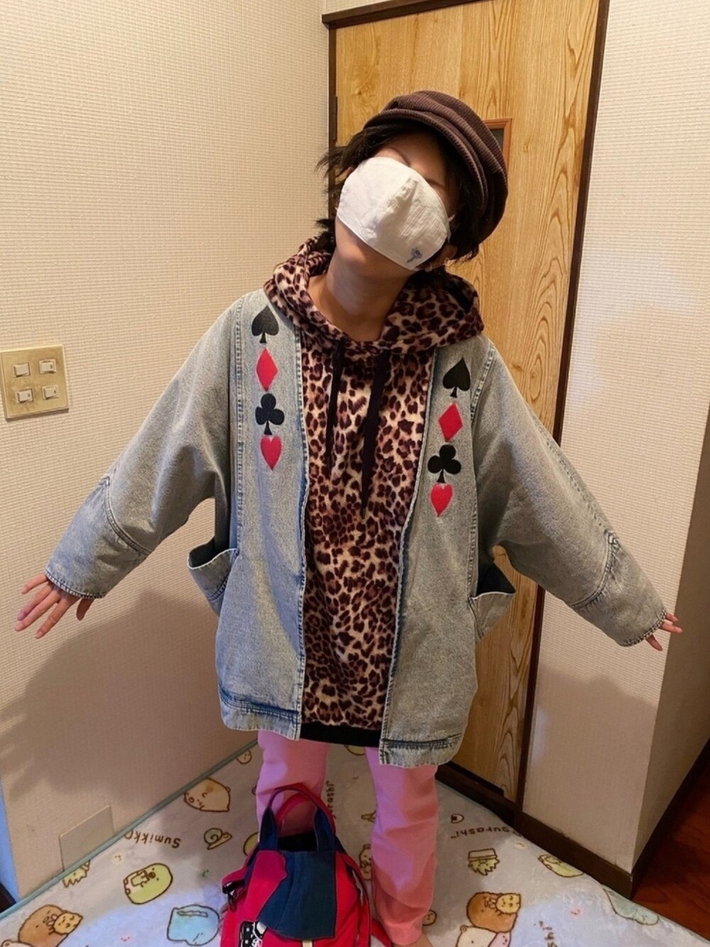 🐸🐸たつきてぃー🧸のブルゾン「スカラ子トランプ柄ケミカルデニムブルゾン」を使ったコーディネート
