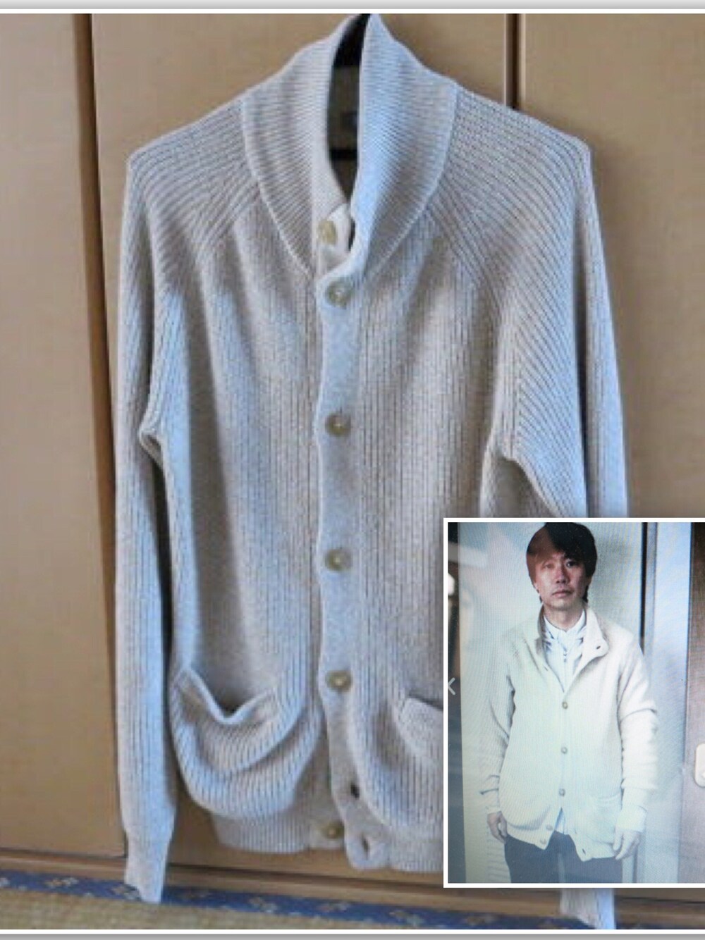 ベージュ系のニット/セーターを着用したメンズの春コーディネートの1枚目の写真
