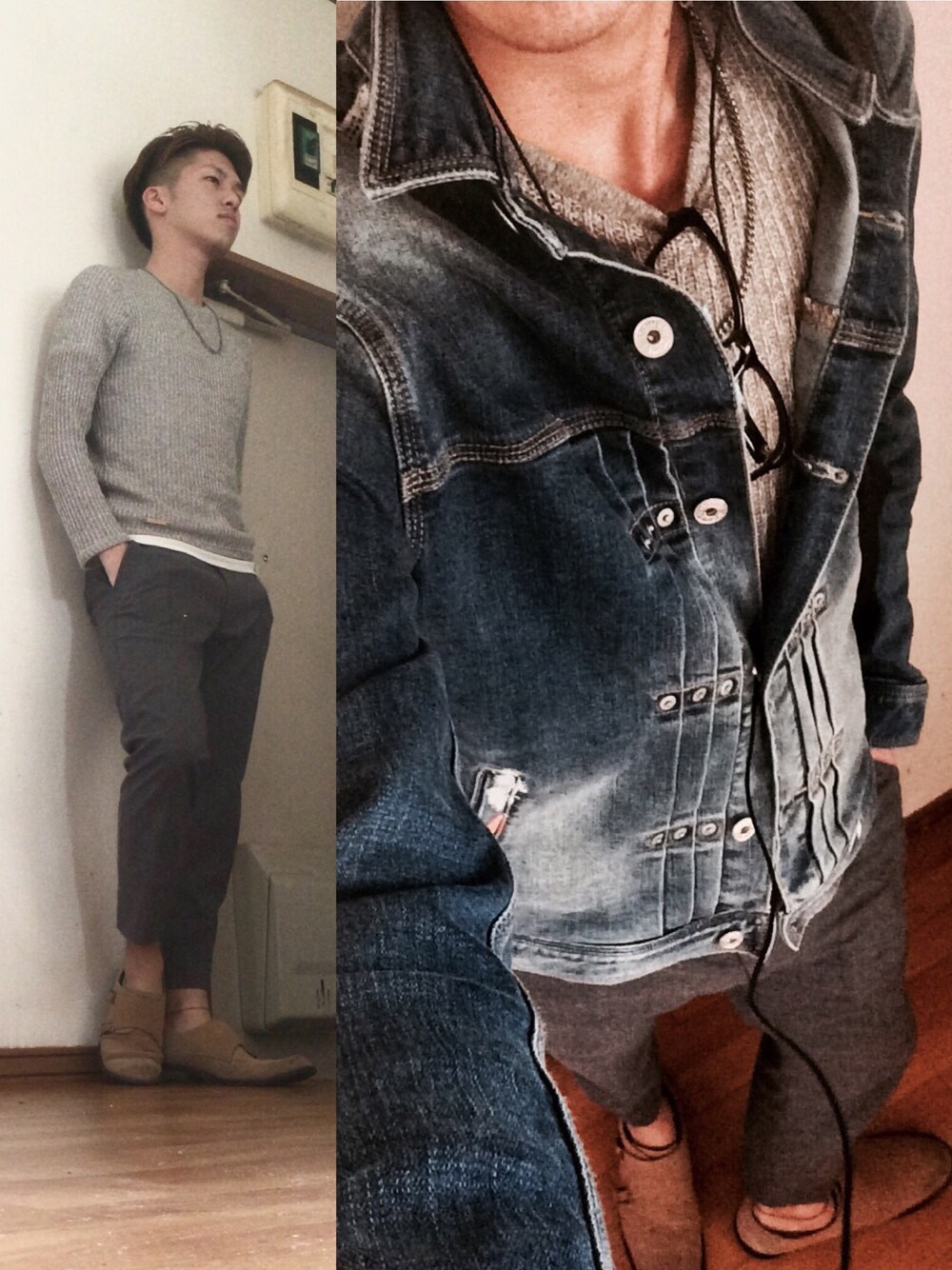 休日なので自撮りしました笑 dowblをメインのデニムとグレスラのコンビで仕上げてみました!笑 上着を脱げば、より休日のラフ感を笑