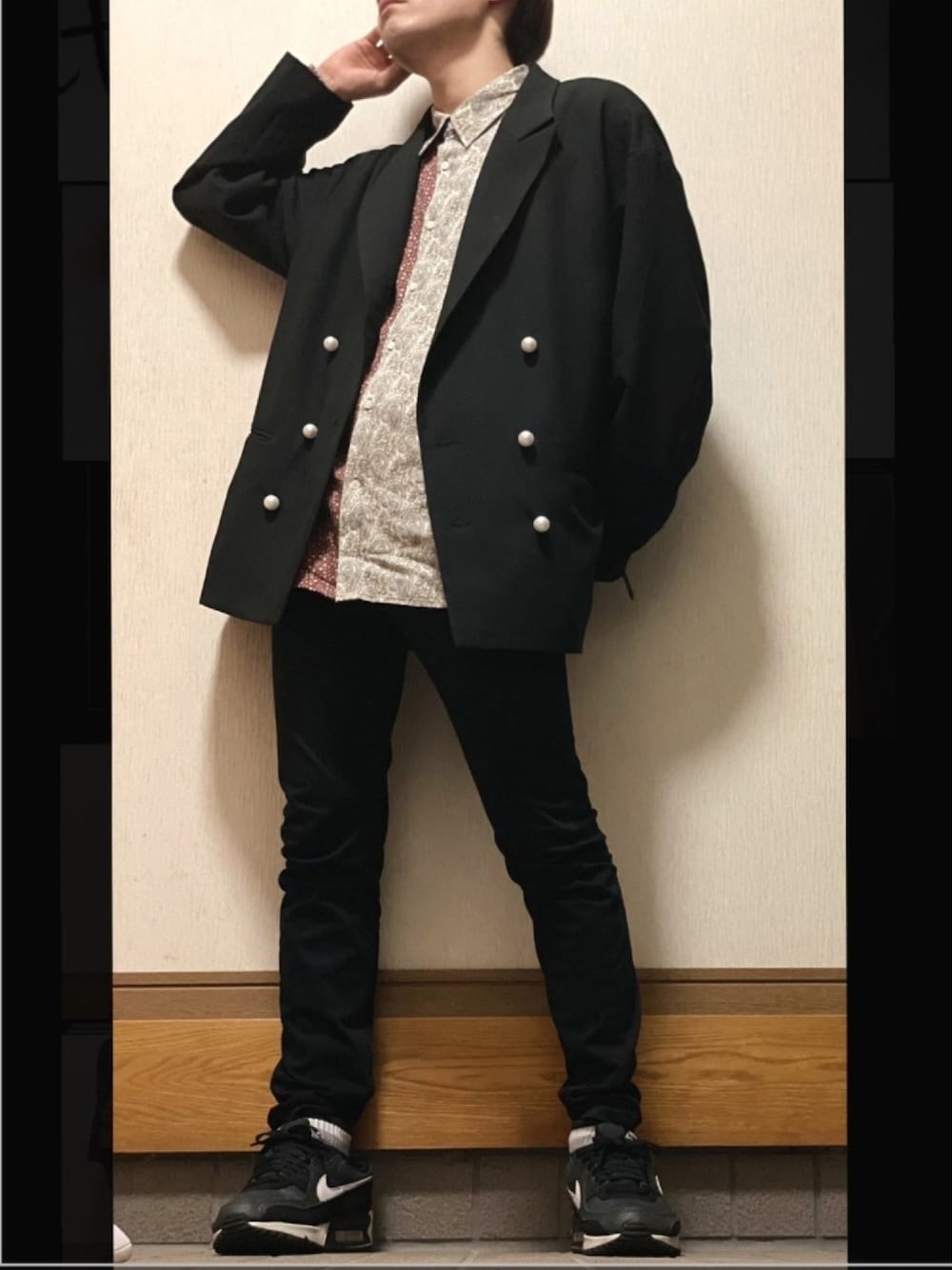 ブラックコーデとニコアンドとユニバーサルオーバーオールのコラボシャツ✨✨ 仕事やちょっとしたお呼ばれに来ていけそうです⑅︎◡̈︎*