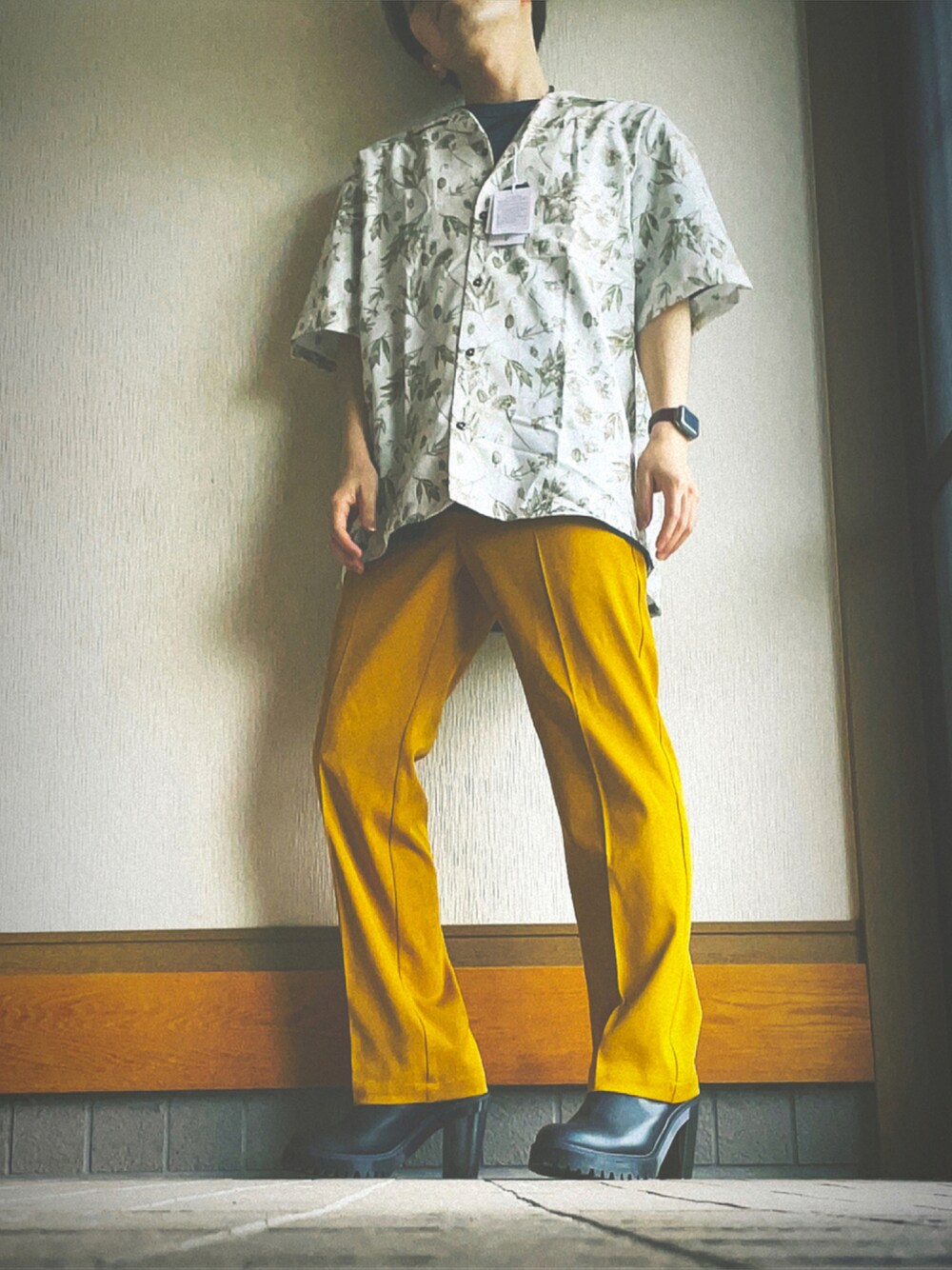 ボタニカルプリントシャツ× カラースリムストレートパンツ THE❁︎Summer vacation coordinate ❁︎ボタニカルプリントシャツは、羽織りにしても柄の映えるアイテム ❁︎今回のコーデのポイント: 【カラースリムストレートパンツ】 スリムなストレートシルエットが今らしいスラックス。トロミのある生地を使っているのでスリムでありながらもリラックス感を感じさせるアイテム ❁︎ Dr.Martensは、ヒールにチャレンジ MENS、WOMEN 問わず着れるよ⑅︎◡̈︎*