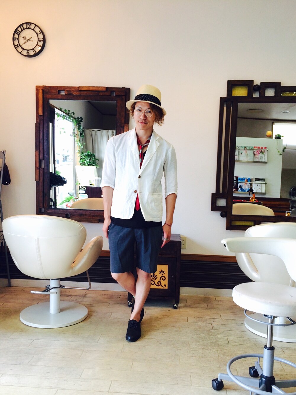 上水流(弟)のハット「WACKO MARIA THR-01 <PANAMA NATURAL/DOTS>」を使ったコーディネート