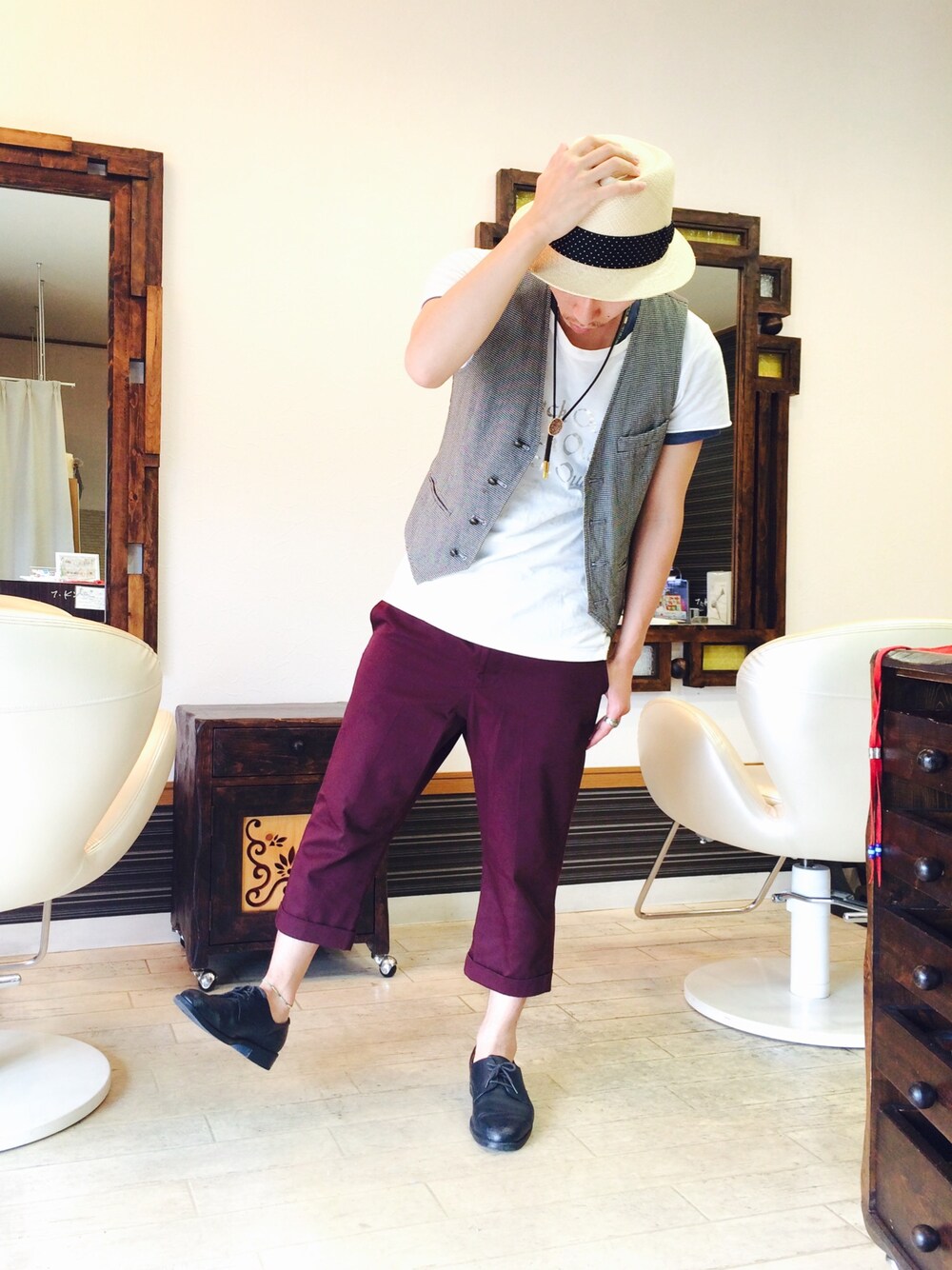 上水流(弟)のハット「WACKO MARIA THR-01 <PANAMA NATURAL/DOTS>」を使ったコーディネート