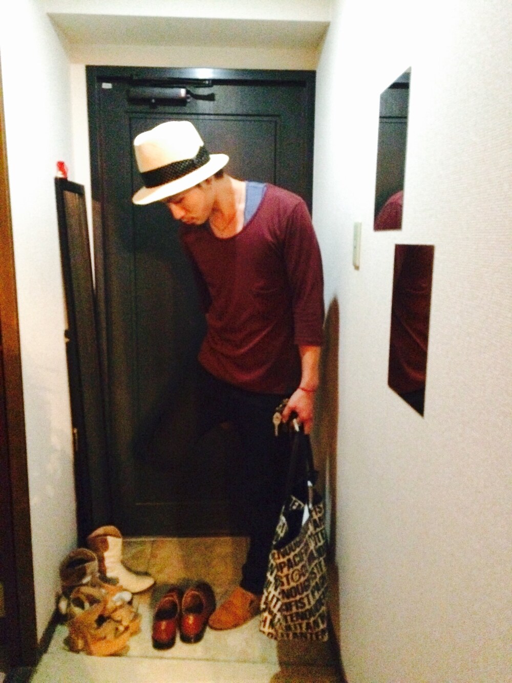 上水流(弟)のハット「WACKO MARIA THR-01 <PANAMA NATURAL/DOTS>」を使ったコーディネート
