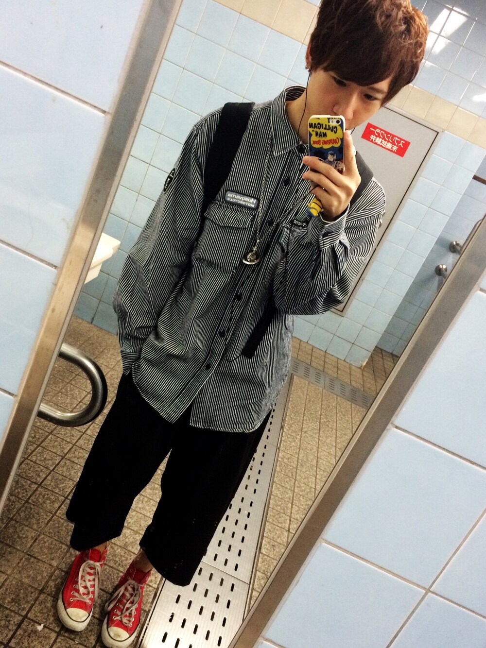 先日買ったヒッコリーシャツ(o^^o) サイズ感とシルエットが好き。 朝晩涼しいからこれくらいがちょうどいい!大好きな赤コンバースは やはり足が痛い← 相変わらずのトイレ撮影www